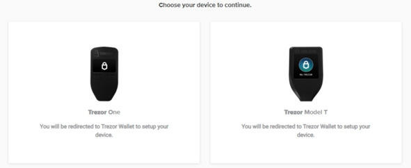 Для начала работы и активации необходимо подключить устройство к компьютеру, перейти на основной сайт в раздел кошелька (https://trezor.io/start/), выбрать модель и нажать кнопку «Продолжить».