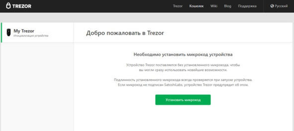 Нажимаете «Установить микрокод» и следуете дальнейшим инструкциям. В процессе установки микрокода следите за тем, что будет появляться на экране компьютера и кошелька. Его придется отключать, и заново подключать, и подтверждать свои действия нажатием на кнопки.