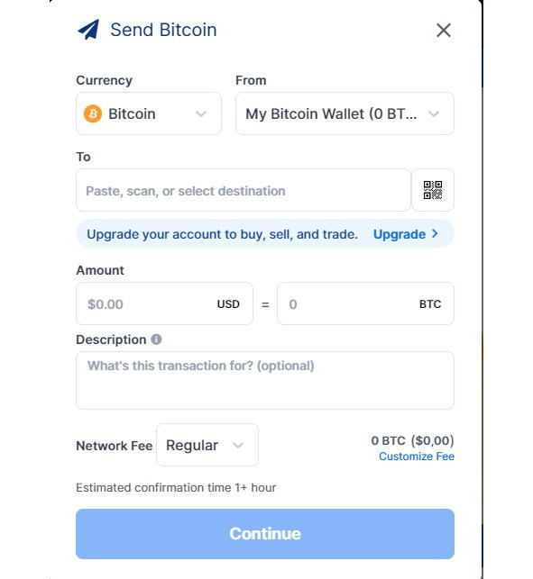 Чтобы отправить свой биткоин, нажмите «Send» в верхней части экрана. Вставьте адрес, кому вы хотите отправить биткоин, укажите количество и выберите комиссию. Если хотите, чтобы средства пришли быстро, указывайте повышенную, если готовы подождать выбирайте обычную.