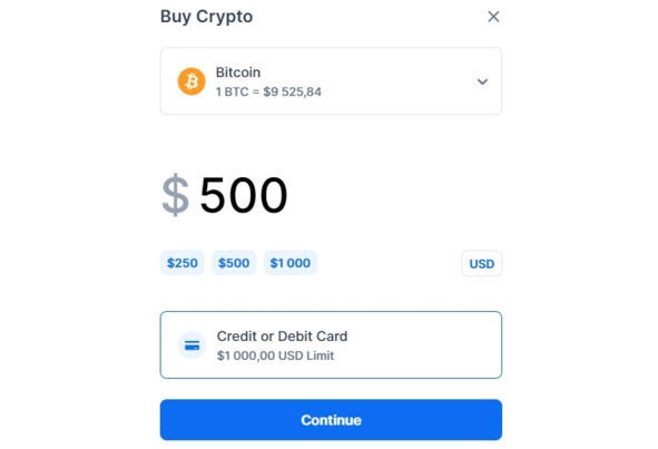 Также вы можете сразу купить биткоин по выгодному курсу, если у вас есть дебетовая/кредитная карта в долларах, единственное ограничение 1 000 $ за один раз.