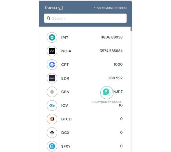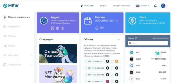 Вот так выглядит интерфейс кошелька для Ethereum и токенов: