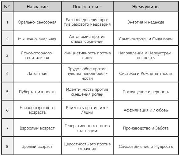 Жизнь и развитие человека подразумевают обязательное прохождение семи стадий становления, в ходе которых эго приобретает целостность. На каждом этапе происходят внутренние изменения, которые зависят от физического и психо-эмоционального роста.