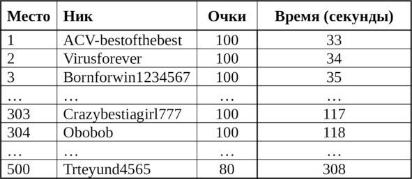 «Obobob, поздравляем! Вы прошли в пятый уровень!» Я прочёл это сообщение от организаторов и очень обрадовался. Как здорово, что двадцатисекундная задержка мне не помешала! Но моё настроение немного упало, когда я увидел полные результаты по итогам четвёртого уровня! Нет, первая троица меня не удивила: те же три бота, которые смогли быстро и безошибочно определить десять уязвимых компов без Антивируса Но, представляете, я опять проиграл Crazybestiagirl777!!! А самое обидное, опять отстал от неё всего лишь на одну секунду!!!