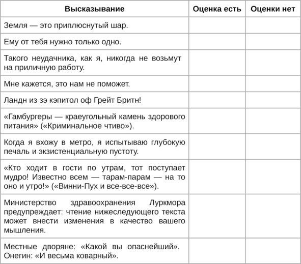 Для того, чтобы глубже разобраться в оценочных суждениях и лучше их распознавать, мы также предлагаем опираться на знание когнитивных искажений некоторых способов мыслить, которые свойственны нам в силу особенностей мозговых процессов. Мы рассмотрим четыре из них: навешивание ярлыков, чтение мыслей, чрезмерное обобщение и предсказание будущего.
