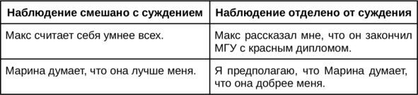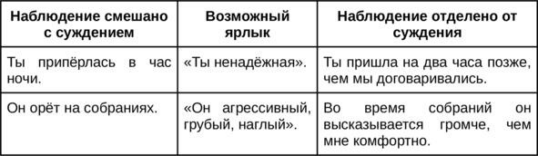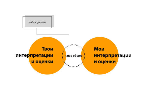 Если мы сообщаем о своих наблюдениях, отделяя это от оценок, в поле нашего общения появляется нечто общее. Это общее фундамент для взаимопонимания.
