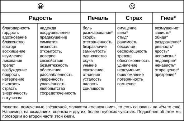 Если вы точно что-то чувствуете, но не находите для этого слов знайте, вы в этом не одиноки. По нашим наблюдениям, в нашей российской культуре не очень принято говорить о чувствах (особенно среди мужчин), поэтому у многих из нас не развит словарь для выражения своих состояний. Следующий список может помочь попробуйте просто пройти по нему и отметить то, что сейчас откликается: