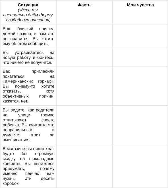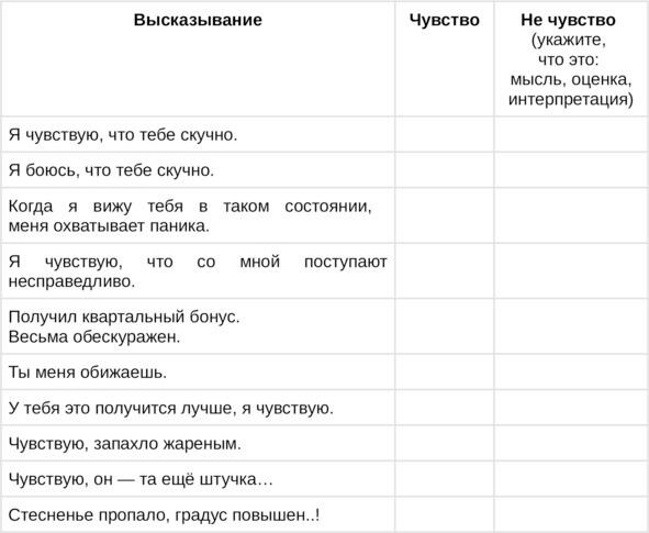 Упражнение 2. Отделяем чувства от мыслей