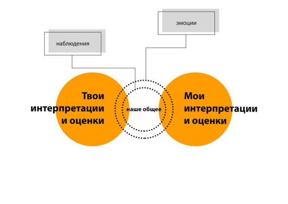 Итак, мы продолжаем знакомиться и исследовать то, что может быть основной для взаимопонимания. У нас уже было знание о том, что мы можем отделять наблюдения от оценок. Теперь мы сказали об эмоциях: наряду с наблюдениями, они являются тем, что известно из опыта любому человеку, ведь абсолютное большинство из нас их испытывает. Мы можем интерпретировать по-разному ситуации, в которых оказываемся, можем иметь разные ожидания от действительности. При этом мы можем выделить некий условный «набор» чувств, которые будут понятны значительному числу людей в силу их распространенности во многих культурах нашей планеты.