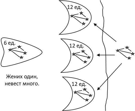 Зачем вы для одного и того же жениха, весом в 6 единиц, открыли три земли, где по 12 единиц весит каждая? На что вы потратили деньги? Лишних невест нечем кормить.
