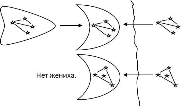 Пречистая невеста, чей день рождения узаконен как законнорожденное дитя, умеет послушать свое созвездие безвремени. И она даст вам опись какие участки безвремени вы залили зарядом, а на каких участках безвремени заряд так и не появился. То есть, то ли дня рождения нужного жениха нет, то ли жених родился, а до невесты не доехал.