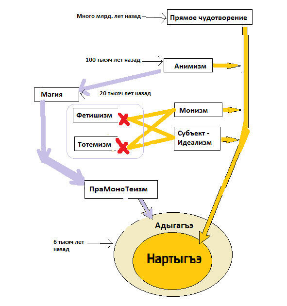 адыги унаследовали Нартыгъэ и вступили в контакты с носителями древнейшего прамонотеизма;