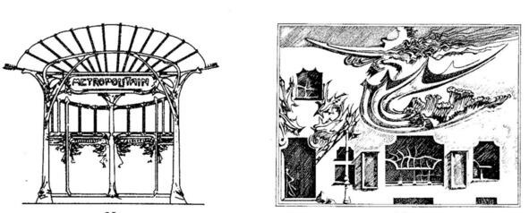 Париждаги ер устидаги метро павильони (Франция),арх. Г. Гимар,1900й. Мюнхендаги Эльвира фотоателье (Германия),арх. А. Эндель, 18971898йй.