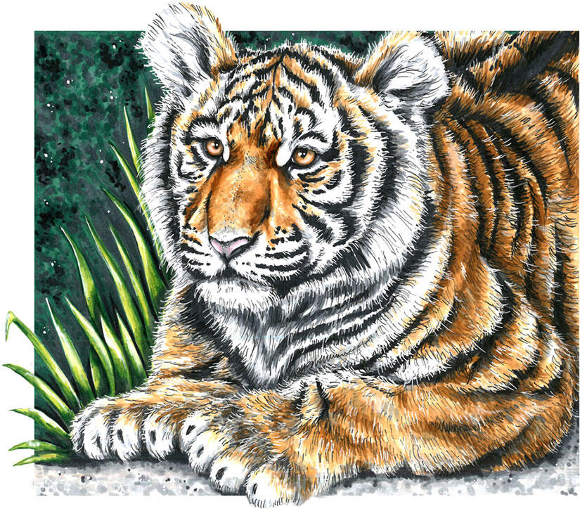 Сначала научись, ответил папа-тигр, приподнимаясь и осторожно переставляя свои большие мягкие лапы по выжженной солнцем траве. Он беззвучно прошел половину пути и замер, наблюдая за зеброй. Затем стал осторожно подкрадываться еще ближе. В этот момент зебра обернулась и, вмиг сорвавшись с места, понеслась прочь. Тигр бросился за ней. Они бежали так быстро и убежали так далеко, что вскоре Рык потерял их из виду и, раздосадованный тем, что не может понаблюдать за охотой, поплелся домой.