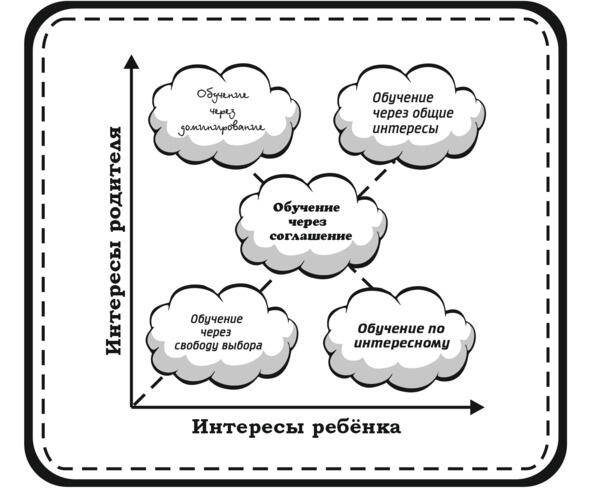 Обучение интересному является противоположностью доминирующей стратегии. Здесь родители полностью поддерживают любой выбор малыша и практически все его денежные запросы. Эта стратегия предполагает бережное отношение к малышу и позволяет ему испробовать многие модели поведения, в том числе проверку на прочность окружающих. Такая стратегия часто применяется в молодых состоятельных семьях в отношении второго поколения, более подробно она будет рассмотрена в главе «Что такое работа?». Еще данного подхода придерживаются родители, практикующие гуманистическую парадигму воспитания, в рамках которой любимому чаду позволено все и совсем нет ограничений и наказаний. Такая среда позволяет проявиться истинным талантам малыша, потому что там, где нет нужды, каждый из нас занимается любимым делом. Такие дети свободны от ограничений и стереотипов и способны видеть то, что не увидит зашоренный взгляд взрослого. В этом случае вся мощь родительской заботы и защиты зачастую заслоняет собой реальный мир, жить в котором наш малыш совсем не учится. Детей учат только тому, что им интересно. Давайте представим, что мы будем кормить малыша так же: только тем, что он хочет. Почти наверняка это будут сладости и печенье, что вряд ли хорошо скажется на здоровье. Благодаря избирательному обучению дети теоретически знают стоимость денег, но не понимают их ценности в труде, сроках накопления и последствиях финансовых ошибок. Например, важность накопления сложно продемонстрировать малышу, когда любой его финансовый запрос удовлетворяется безусловно и мгновенно. Это касается и других направлений обучения, от которых зависит поведение уже взрослого человека. Ребенок привыкает к постоянной и безусловной помощи извне и перестает развивать самостоятельность. Впрочем, при избыточности ресурсов это не будет недостатком. Стратегия обучения интересному полезна для раскрытия талантов малыша, при этом нужно постараться заинтересовать его другими полезными темами и помочь ему хотя бы ненадолго погрузиться в реальный мир.