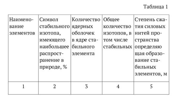 С ростом гравитационного сжатия в недрах звезд увеличивается температура звездного вещества и степень деформации (сжатия) силовых нитей внутри звездного пространства. При повышении в центральной части звезды температуры около 107 K степень сжатия силовых нитей составит 0,33 1025 м (таблица1). Это несколько превышает степени сжатия их во внутриатомном пространстве атома водорода, в результате электрон преодолевает притяжение ядра и вылетает из атома. Образуется « бульон « из высоко энергичных и высоко скоростных протонов и электронов. Дальнейшее повышение температуры до 107 K и связанного с ней увеличения степеии сжатия силовых нитей до 0,22 1025 м приводит к следующим процессам. Протоны поглощают электроны и превращаются в нейтроны. Затем протоны объединяются с нейтронами и образуют дейтроны. Как только степень сжатия достигнет величины равной таковой в ядре гелия, два дейтрона сливаются и образуют ядро гелия. Законсервированная в связях протон нейтрон энергия пространства переходит в энергию материи и выделяется в виде ядерной энергии. Ядро гелия представляет собой первую энергетическую оболочку (q), входящую в состав ядер всех химических элементов (Рис.1a). Каждый нуклон в ядре находится в квантовом состоянии, обладает определённым количеством энергии и моментом вращения. Согласно принципа Паули, в одном состоянии могут находиться не более одного протона и одного нейтрона. Оболочка состоит из двух энергетических уровней: уровень протонов и уровень нейтронов. Она полностью заполнена нуклонами. Изотоп атома гелия с ядром 4He стабилен и имеет повышенную устойчивость. Вокруг ядра обращаются два электрона с антипаралельными спинами. Оба электрона находятся на самой низшей по энергии орбитали 1s2, граничная поверхность которой является симметрично-сферической. Внутри этой поверхности силы сжатия уравновешиваются силами расширения. Здесь электронная плотность достигает своего максимального значения. Степень деформации (сжатие) силовых нитей пространства до граничной поверхности высока и однородна, а за ней, то есть вокруг эффективного радиуса атома) очень незначительна, что делает химическую связь гелия с другими элементами трудно доступной.