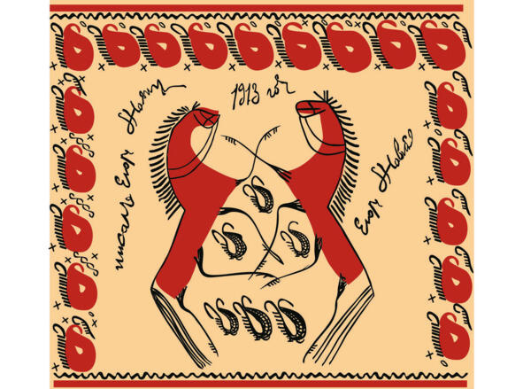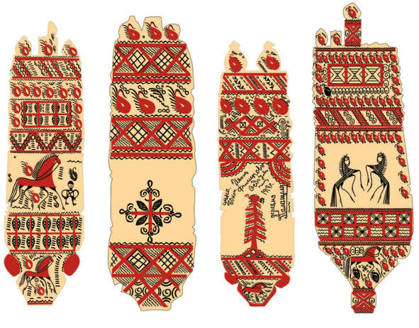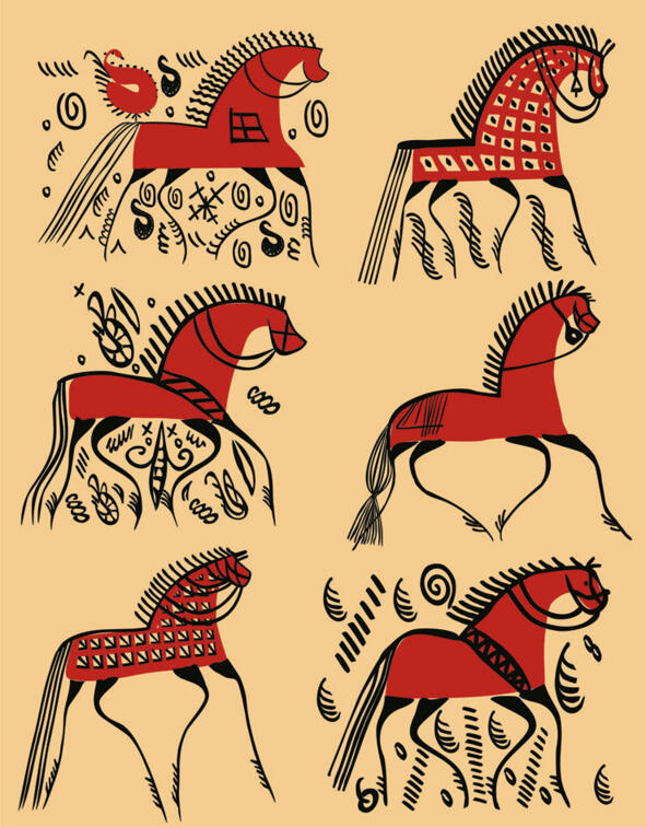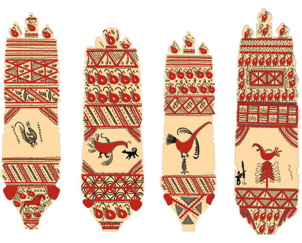 Фольклорные и этнографические данные говорят, что конь и птица в палащельской росписи являются символами. Конь символ мужчины, а птица женщины. Часто их изображают вместе, причём обычно птицу рисовали на ёлке. Почему? Оказывается, в Мезенском крае с ёлками был связан интересный обряд зарубание «новизны». И посвящён он был свадьбе.