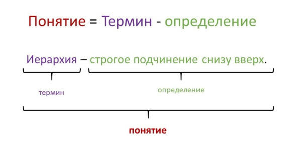 Перед тем как приступить к изучению справочника, рассмотрите схему и запомните, что понятийный аппарат имеет свою четкую структуру. Если задание требует «раскрыть понятие», значит требуется назвать термин и дать ему определение. Если задание требует назвать термин, то в ответе не следует раскрывать его сущность.