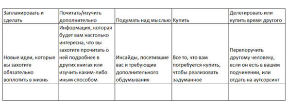 Сделайте себе такую таблицу в электронном виде и заполняйте ее, пока будете читать книгу. Так вы получите больше пользы.