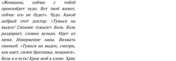 «Я привезу тебе вечером лекарство, поняла ты или нет?! Я сказал привезу!» Приподнимается в постели, крепко вцепляется в твои пальцы, а ты опаздываешь к Бубубову, пытается встать, смотрит в стену мимо тебя, словно знает уже то, чего ты еще не знаешь, дрожит ее рот, измазанный манной кашей. Седые желтые патлы. Осень наступает после зимы. Хочет подняться, идти в туалет. Бубубов не любит, когда опаздывают. Отцепить ее сухие сильные пальцы, повернуть лицом к стене, поднять и опереть ее руки о стену, дальше по коридору она доберется до туалета сама, инстинкт еще не угас. Ты смотришь ей в спину, подтягивая галстук. Как смешно она семенит, касаясь одною рукою стены. Без пятнадцати семь. Тебе не хочется плакать, тебе не хочется и смеяться. Тебе не кажется, что ты выпускаешь из рук маленького ребенка и что это его первые шаги. В половине восьмого ты должен быть уже на Таганке. Она доберется по стенке сама и вернется, никуда не денется, чертова кукла. И неизвестно, сколько ты еще будешь таскать из-по нее простыни, измазанные зеленым старушечьим говном. На метро до Таганки пятьдесят пять минут. Захлопнуть дверь. Она поворачивается. Бессмысленный взгляд. Чревовещание. «Без нитронга ей будет трудно преодолеть ночной кризис, не стану вас обнадеживать».