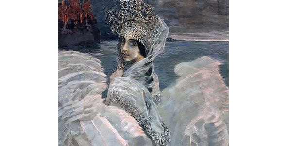 Поэт слышал от своей няни несколько русских сказок с таким персонажем. Сюжет их сводится к тому, что появляется девушка- птица из потустороннего мира (в другом виде на земле она появиться не может). Сбросив свое оперение на берегу, она купается, а в это время прекрасный юноша похитил ее оперение, которое имеет магическую силу, и она не может вернуться в свой мир. Чтобы вернуть прежний облик, она вынуждена стать его женой. Но при этом она ставит своему мужу условие, которое он не должен нарушать. Он нарушает его рано или поздно. Тогда она возвращает себе одежду и свободу и улетает в свое поднебесное царство, унося с собой весну и солнце. Провинившийся юноша вынужден совершить путешествие на небеса, чтобы добыть брачный венец. Прилагая для этого невероятные усилия, он получает желаемое. Тогда возлюбленная к нему возвращается. Славяне верили в то, что душа способна странствовать по небесам в облике лебедя.