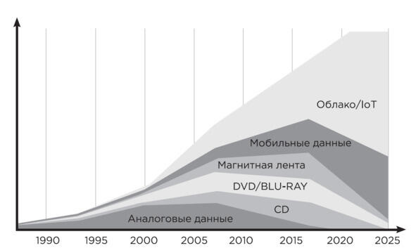 Рис. 1.1. Прогноз роста данных на различных носителях. Источник: Data Relish