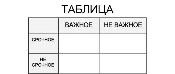 Вспоминаем о том, как расставлять приоритеты. Кто не знает тот узнает. Используем таблицу, с помощью которой нужно определить себе задачи по принципу:
