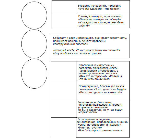 На тренинге нас засняли на видео и после этого был теоретический блок о теории Эрика Берна и о том, как мы будем себя на видео анализировать, по каким поведенческими маркерам. Предлагаю и Вам сейчас эти маркеры узнать, чтобы Вы могли свое видео просмотреть и проанализировать свое поведение. Эрик Берн считал, что в любой момент времени человек находится в одном из трех Эго-состояний: Родитель, Взрослый и Дитя. И в зависимости от того в каком состоянии человек находится, он по-разному себя ведет и вызывает различную реакцию у окружающих. Последние исследования нейрофизиологов, и мои интроспективные наблюдения это подтверждают, говорят о том, что когда мы находимся в различных состояниях своего Эго, то у нас происходит активация в различных зонах мозга и мы по-разному воспринимаем реальность, себя и других людей. Мы как будто одеваем очки разного цвета или вовсе снимаем их. Давайте подробнее разберем эти состояния и то, как мы воспринимает реальность находясь в том или ином состоянии.