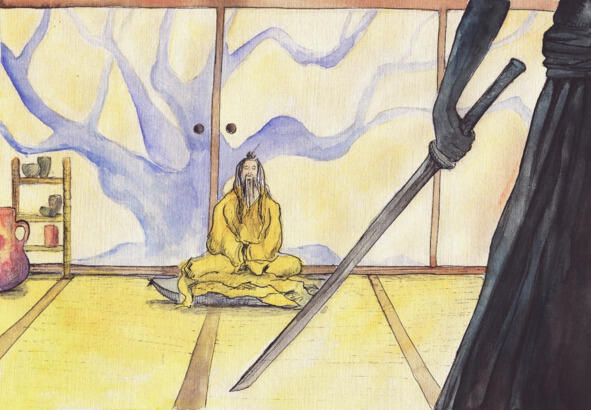 Жил-был старый мастер дзэн. Он жил один в хижине у подножья горы. Однажды ночью, когда Ноноко медитировал, в его хижину ворвался грабитель и, угрожая мечом, потребовал денег.
