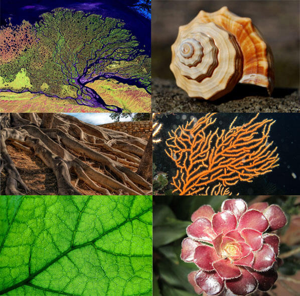 Получается, что в основе развития мира есть некая программа развития мы это видим по окружающей нас гармонии. В природе мы наблюдаем фракталы и самоподобие повсюду: корни дерева и кровеносная система человека, прожилки листа и вид реки из космоса, кораллы, деревья, узоры на замёрзшем окне, снежинки, молния, нейроны головного мозга и звёздные системы, циклоны в атмосфере и раковины моллюсков. Вокруг нас гармония, раскрывающаяся через самоподобие (рисунок 3).