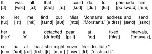 It was all that I could do to persuade him to let me find out Miss Morstans address and send her a detached pearl at fixed intervals, so that at least she might never feel destitute.»