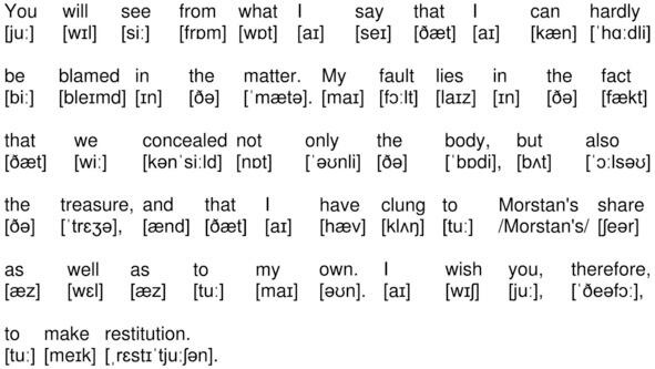 You will see from what I say that I can hardly be blamed in the matter. My fault lies in the fact that we concealed not only the body, but also the treasure, and that I have clung to Morstans share as well as to my own. I wish you, therefore, to make restitution.