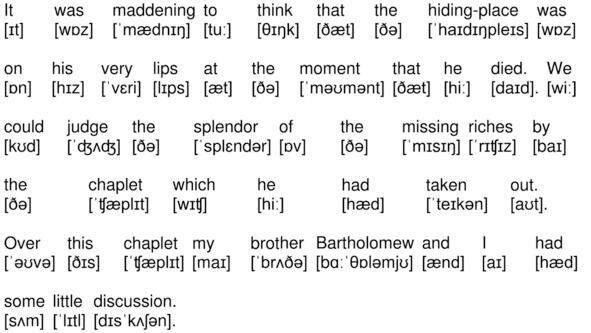 It was maddening to think that the hiding-place was on his very lips at the moment that he died. We could judge the splendor of the missing riches by the chaplet which he had taken out. Over this chaplet my brother Bartholomew and I had some little discussion.