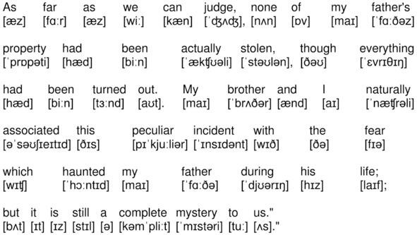 As far as we can judge, none of my fathers property had been actually stolen, though everything had been turned out. My brother and I naturally associated this peculiar incident with the fear which haunted my father during his life; but it is still a complete mystery to us.»
