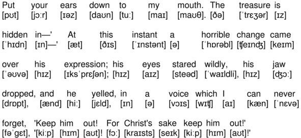 Put your ears down to my mouth. The treasure is hidden in » At this instant a horrible change came over his expression; his eyes stared wildly, his jaw dropped, and he yelled, in a voice which I can never forget, «Keep him out! For Christs sake keep him out!»