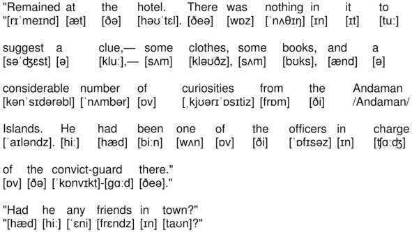 «Remained at the hotel. There was nothing in it to suggest a clue, some clothes, some books, and a considerable number of curiosities from the Andaman Islands. He had been one of the officers in charge of the convict-guard there.»