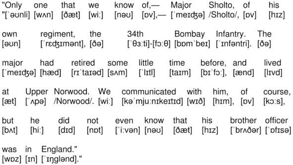 «Only one that we know of, Major Sholto, of his own regiment, the 34th Bombay Infantry. The major had retired some little time before, and lived at Upper Norwood. We communicated with him, of course, but he did not even know that his brother officer was in England.»