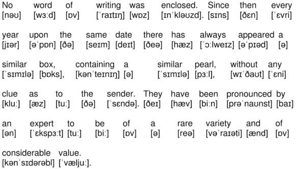 No word of writing was enclosed. Since then every year upon the same date there has always appeared a similar box, containing a similar pearl, without any clue as to the sender. They have been pronounced by an expert to be of a rare variety and of considerable value.