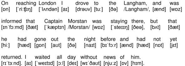 On reaching London I drove to the Langham, and was informed that Captain Morstan was staying there, but that he had gone out the night before and had not yet returned. I waited all day without news of him.