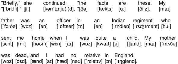 «Briefly,» she continued, «the facts are these. My father was an officer in an Indian regiment who sent me home when I was quite a child. My mother was dead, and I had no relative in England.