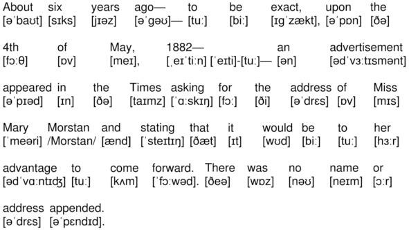 About six years ago to be exact, upon the 4th of May, 1882an advertisement appeared in the Times asking for the address of Miss Mary Morstan and stating that it would be to her advantage to come forward. There was no name or address appended.
