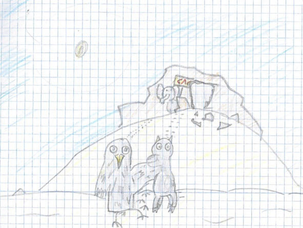 Макс и Желти переглянулись. Макс пожал плечами, достал банку консервов, открыл ее и протянул скворцу. Какое-то время они молча ели. Вдруг земля впереди задрожала, разъехалась и на поверхность выехала платформа. На ней стояло странное существо. Больше всего оно было похоже на маленькую мышь. Но все же не совсем. Ведь у маленьких мышей обычно не бывает железных ног, согнутых в обратную сторону. А еще мыши довольно редко сжимают в лапках огромный гранатомет.