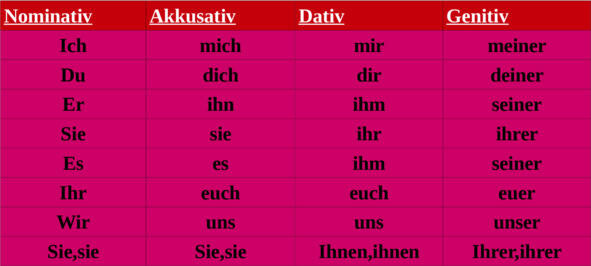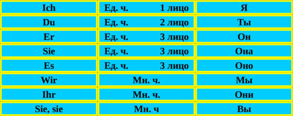 В немецком языке есть следующие местоимения: