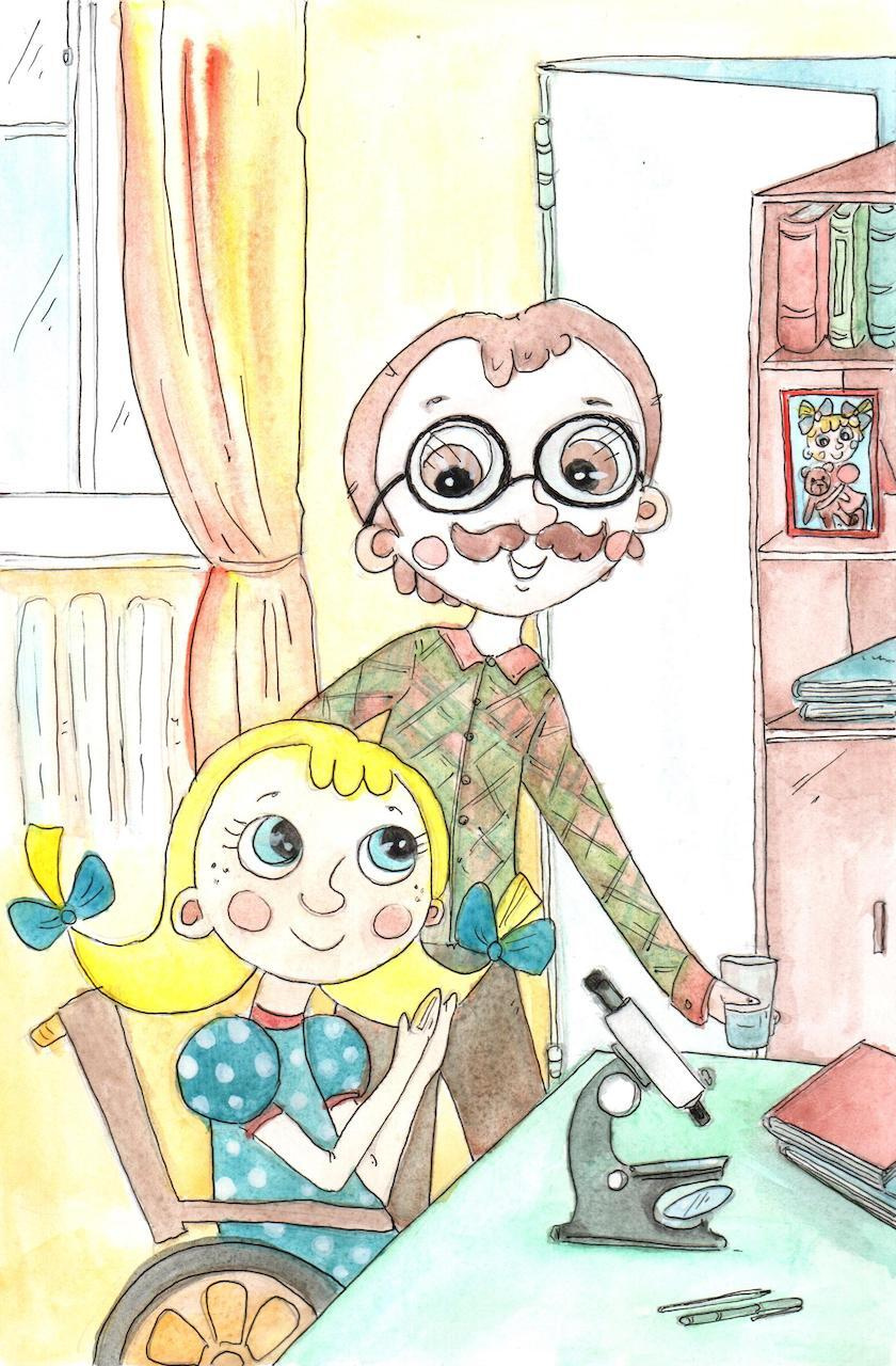Пора тебе, доченька, познакомиться с этим замечательным прибором, сказал папа. Много великих открытий сделали с его помощью учёные ми-кро-би-о-ло-ги. Может быть, и ты сделаешь открытие. Пока не научное своё.