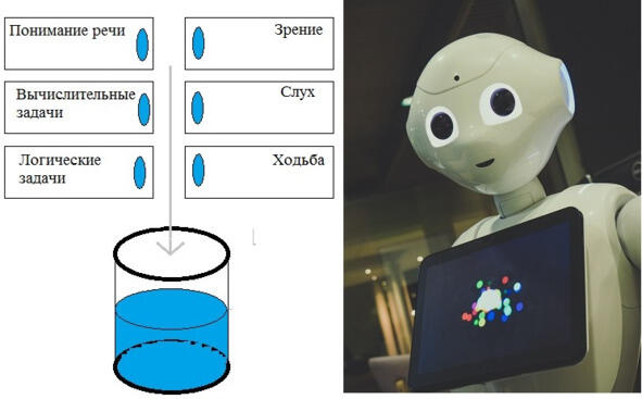 Искусственный интеллект это человеческие способности, реализованные машинами. Часто даже очень и очень хорошо. Способности запоминать, хранить запомненное, считать поражают. Я бы сравнил его с сосудом, который наполняют капли способности. Пока этот сосуд не заполнен, но наполняется всё больше. Я ощущаю это потому, как доступнее стали компьютеры и как производительнее они стали. Моделировать и решать вычислительные задачи можно дома, и не нужен вычислительный центр с ожиданием, когда пустят твою программу. Интеллектуальные советчики экспертные системы, распознавание голоса, Алиса, Siri. Фитнес-гаджеты измеряют пульс, давление, шаги, калории, нагрузку, контролируют и советуют, медицинские гаджеты помогают лечиться. Всё это для нас, для людей. Значит, есть спрос на все это. Главное, чтобы со всем этим прожить хорошо, дружно, с пользой. Так как мы разные, живем по-разному, то и польза разная. Вот и нужно общее найти в разном и за это общее потянуть как за то звено, чтобы каждый сам решил, что ему полезнее
