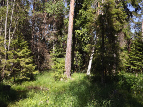 Вдали показался небольшой остров, на котором стоит Никольский скит. Вокруг него растут сосны, окружая его со всех сторон.