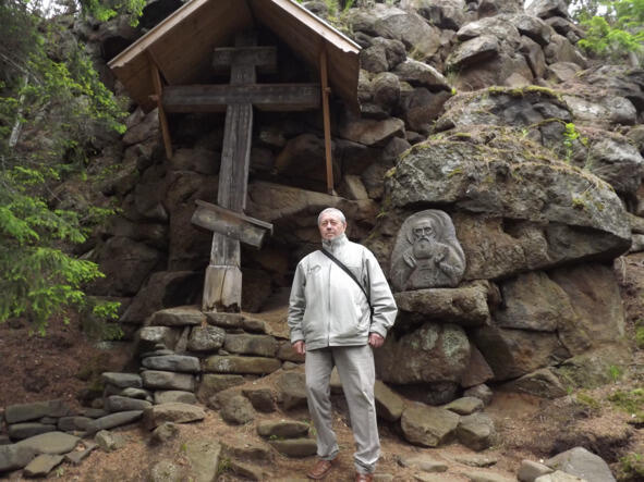 Совершили экскурсию по Центральной усадьбе Валаамского монастыря. На площадке на территории монастыря стоят напротив друг друга две маленькие часовни. Одна часовенка поставлена в честь посещения монастыря императора Александра I, который приезжал сюда без свиты, инкогнито. Здесь он пробыл ровно три дня. Вторая часовня поставлена в честь приезда сюда императора России Николая I, который приезжал с пышной свитой.