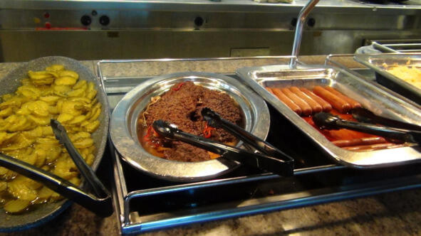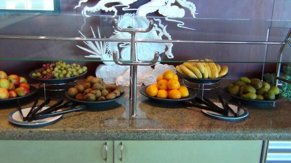 Вот тут можно было разжиться фруктами, взять их в каюту. Закусывать после принятия "лекарства". Официантка с Украины нам объяснила, что здесь так принято, и мы можем тоже не стесняться.