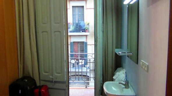 Настроение было самым радужным и мечтательным. Перед полетом я узнал, что именно в тот день, 26 октября, в столице Каталонии состоится футбольный матч года, «классико», как зовут его испанцы между Барселоной и мадридским Реалом. Мы уже были на стадионе Ноу Камп, в 2009-м, когда Барса разгромила «Атлетико» Мадрид со счетом 5:2. Получили огромное удовольствие от игры, атмосферы на стадионе. Но вот купить билеты по интернету еще в Москве не получилось, слишком много было желающих, да я немного поздно узнал, что они продаются именно в этот день, 24 октября. По плану-кинжалу мы должны были поехать к стадиону, и там попробовать приобрести билетики. Но, шествуя по Рамбле, увидели они продаются там, в киоске. По сумасшедшим ценам: 900 евро за билет на хорошие места, и по 300 на самую галерку, откуда мячик кажется меньше горошины черного перца на тещиной кухне. Тут я очень пожалел, что не купил авиабилеты на пятницу, 25 число. Ибо в программе все спрессовывалось, смешалось, как в доме Облонских. За 3 недели дата игры с Реалом была -27 октября, в день, когда наш лайнер уже уйдет из порта. А тут перенесли матч на 26-е. У нас был запланирован шоппинг, посещение внутренностей Саграда Фамилии, поход к дому Гауди Бальо и еще что успеем. Матч решительно путал все карты. Ну, ладно, решили мы, для начала нужно посмотреть внутренности хостела Аполо. А с «Ноу Камп» разберемся по самочувствию. Вошли в номер. Мда, лучше бы я забронировал другой отель, за 100 евро. Скромная спартанская обстановка в комнате, умывальник, стол, кровать, шкаф. Туалет, душ в коридоре, прямо напротив нашего номера. Зато есть балкон, выйдя на который, можно украдкой от жены томно подмигнуть каталонской кокетке в доме напротив.