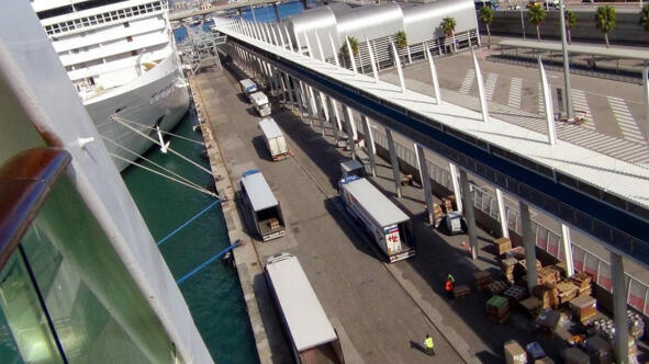 А нам кажется, что Барселона замерла в ожидании Судно компании MSC Orchestra готово выйти за нами.