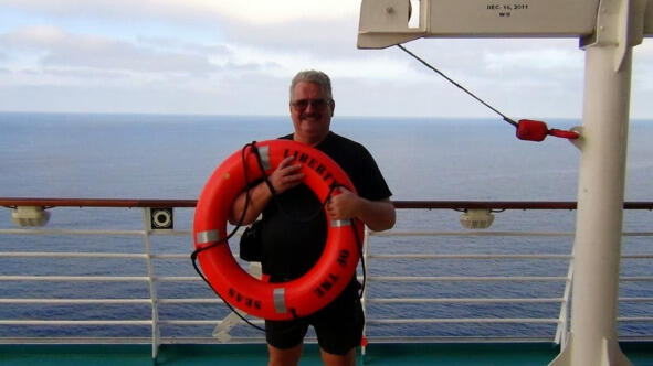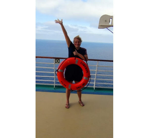 И мы потопали в каюту. По пути выполнили давнюю традицию круизеров с форума Винского сфотографировались со спасательным кругом. А что в тему SOS, как говорится.